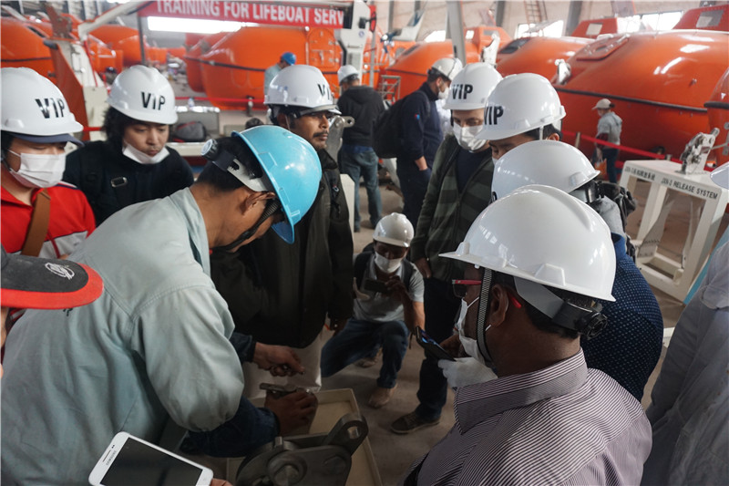 船舶服务精英人员来到开云游戏平台,对厂家设备的新设计,新产品进行深层次的学习和服务训练,成为佼燕救生设备的优秀服务商,为佼燕的客户提供更优质,更专业,更及时的服务.
