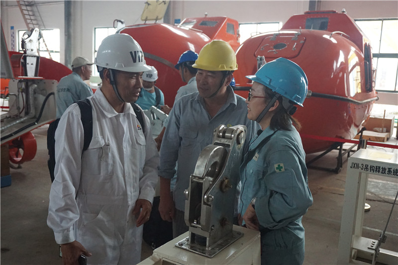 船舶服务精英人员来到开云游戏平台,对厂家设备的新设计,新产品进行深层次的学习和服务训练,成为佼燕救生设备的优秀服务商,为佼燕的客户提供更优质,更专业,更及时的服务.